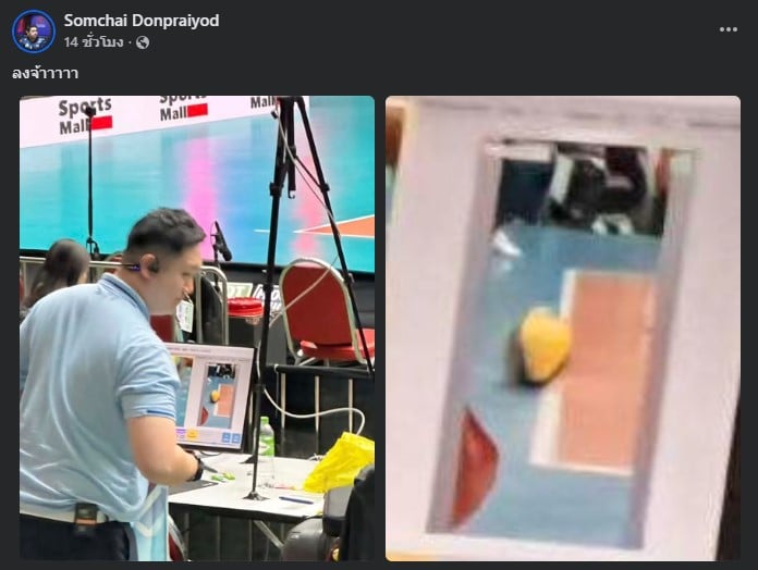 ล่าสุด สมชาย ดอนไพรยอด หนึ่งในเจ้าหน้าที่ทีมวอลเลย์บอลหญิงไทย ได้โพสต์ภาพผ่านทางเฟซบุ๊ก เป็นภาพที่ถ่ายไปยังมุมกล้องของกรรมการ พร้อมแคปชันสั้นๆว่า “ลงจ้าาาาา”