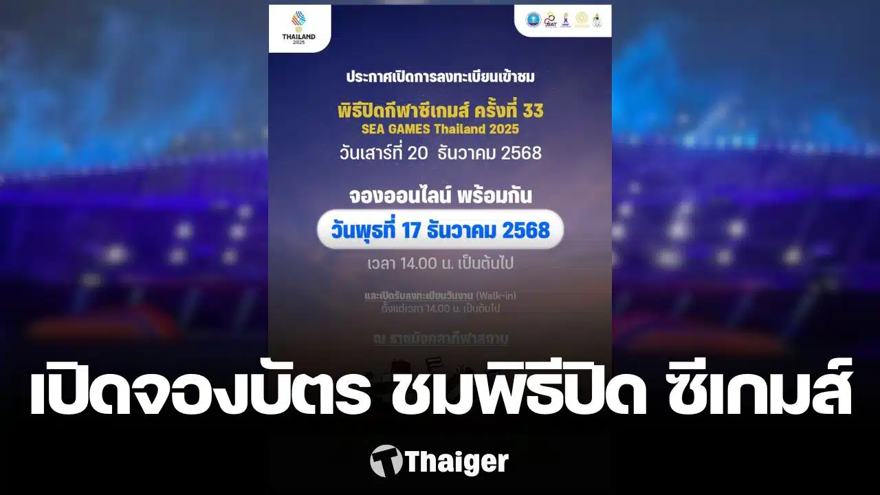วันนี้ (17 ธันวาคม 2568) เพจเฟซบุ๊ก SEA GAMES Thailand 2025 ได้โพสต์ประชาสัมพันธ์ ในการเปิดให้ลงทะเบียนเข้าชมพิธีปิด ซีเกมส์ ครั้งที่ 33 ณ สนามราชมังคลากีฬาสถาน ระบุว่า
