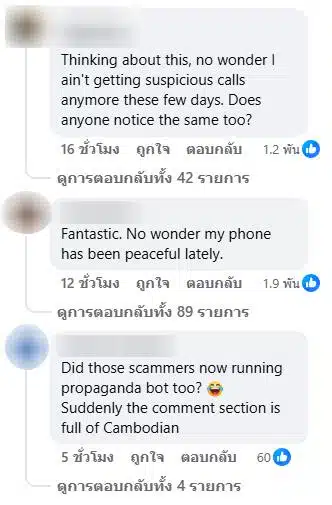 ทั้งนี้จากากรตรวจสอบคอมเม้นท์พบชาวต่างชาติจำนวนมากเขียนข้อความสนับสนุนการปราบศูนย์คอลเซ็นเตอร์ โดยมีชาวเน็ตเข้ามาแสดงความเห็นกันเป็นจำนวนมาก ยกตัวอย่างเช่น