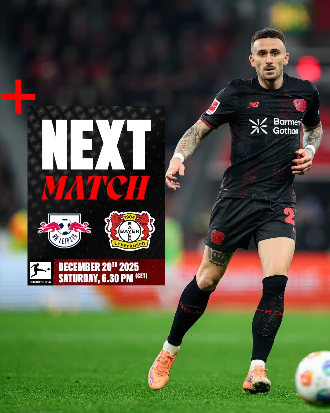 - 19/08/23 เลเวอร์คูเซ่น 3-2 ไลป์ซิก (บุนเดสลีกา)