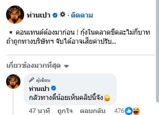 กำลังเป็นคลิปไวรัลที่ถูกพูดถึงอย่างมากในโลกออนไลน์ขณะนี้ เมื่อเพจ ท่านเปา ได้ออกมาโพสต์คลิปประฌามคอนเทนต์ขยะ พร้อมแคปชั่นประกอบว่า “คอนเทนต์ต้องมาก่อน ! กุ้งในตลาดขีดละไม่กี่บาท ถ้าถูกทางบริษัทฯ จับได้อาจเสียค่าปรับ…กลัวทาง…ี๋.น้..ยเห็นคลิปนี้จัง”