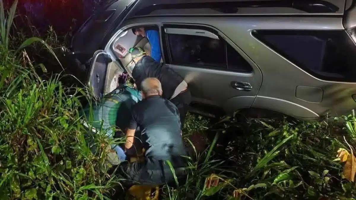 พบภาพความสูญเสียรถยนต์อเนกประสงค์ 7 ที่นั่ง โตโยต้า ฟอร์จูนเนอร์ สีบรอนซ์เงิน ทะเบียนสงขลา เสียหลักพุ่งตกลงไปข้างทาง สภาพรถบ่งบอกถึงความรุนแรงที่เกิดขึ้น กระจกและประตูฝั่งคนขับมีรูกระสุนเจาะทะลุ 2 จุดใหญ่ ภายในรถพบร่างไร้วิญญาณของนายพะยอม สังข์ทอง หรือที่ชาวบ้านรู้จักกันดีในนาม “กำนันยอง” อายุ 64 ปี อดีตกำนันตำบลท่าชะมวง อ.รัตภูมิ จ.สงขลา