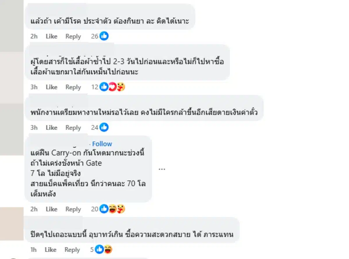 ขณะที่บางรายถึงขั้นประฌามบุคคลากรของสายการบินนี้ โดยระบุว่า “พนักงานเตรียมหางานใหม่รอไว้เลย คงไม่มีใครกล้าขึ้นอีกเสียดายเงินค่าตั๋ว“.