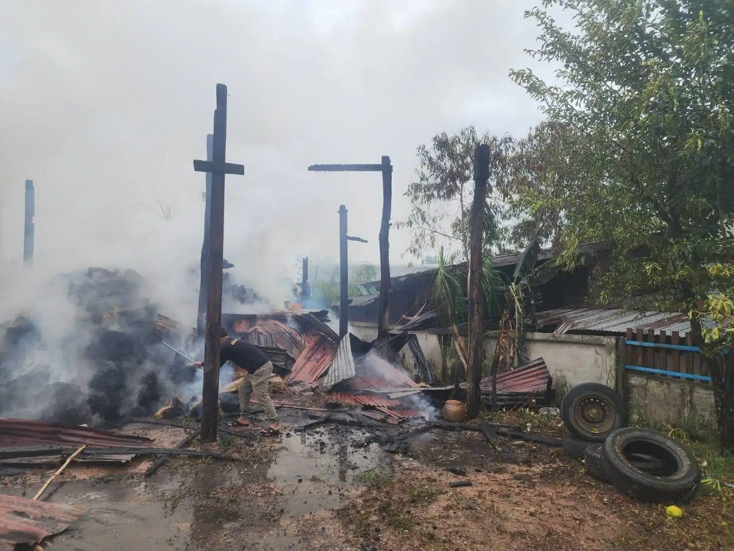 บ้านประชาชน พื้นที่โคกสูง จ.สระแก้ว ไฟไหม้ได้รับความเสียหาย หลังเจออาวุธหนักเขมรยิงมั่วตกใส่ เคราะห์ดีไม่มีผู้เสียชีวิตหรือบาดเจ็บ