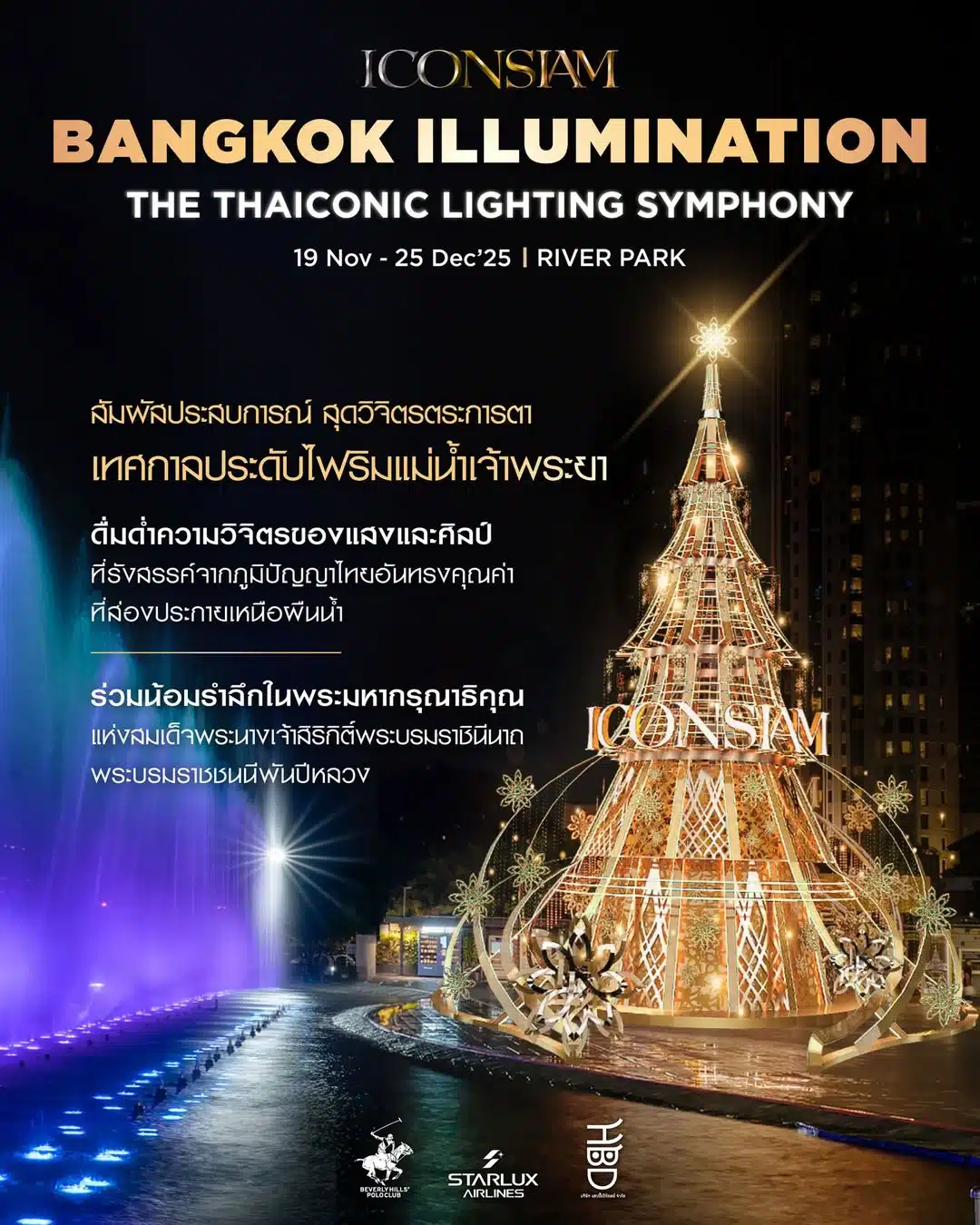 และถ้าพูดถึงปลายปีแล้วไม่พูดถึง ICONSIAM ก็เหมือนกินข้าวมันไก่แล้วลืมน้ำจิ้ม ปีนี้มีงาน ICONSIAM Bangkok Illumination 2025 ภายใต้คอนเซปต์ The Thaiconic Lighting Symphony กับต้นคริสต์มาสสูงกว่า 20 เมตร ณ ริเวอร์ พาร์ค ผสมผสานแสง สี เสียงกับบทเพลงคลาสสิกระดับนานาชาติ ถ่ายทอดเอกลักษณ์ไทยร่วมสมัย ต้นคริสต์มาสประดับด้วย Snowflakes การแสดงระบำสายน้ำ The ICONIC Multimedia Water Features และ สัมผัสกับความสวยงามของแท่งไฟเรืองแสงระดับโลก Infinity Forest โดย SOFTlab ที่จะมาพาทุกเข้าสู่ปีใหม่อย่างยิ่งใหญ่และเต็มไปด้วยความสุขในทุกมิติ