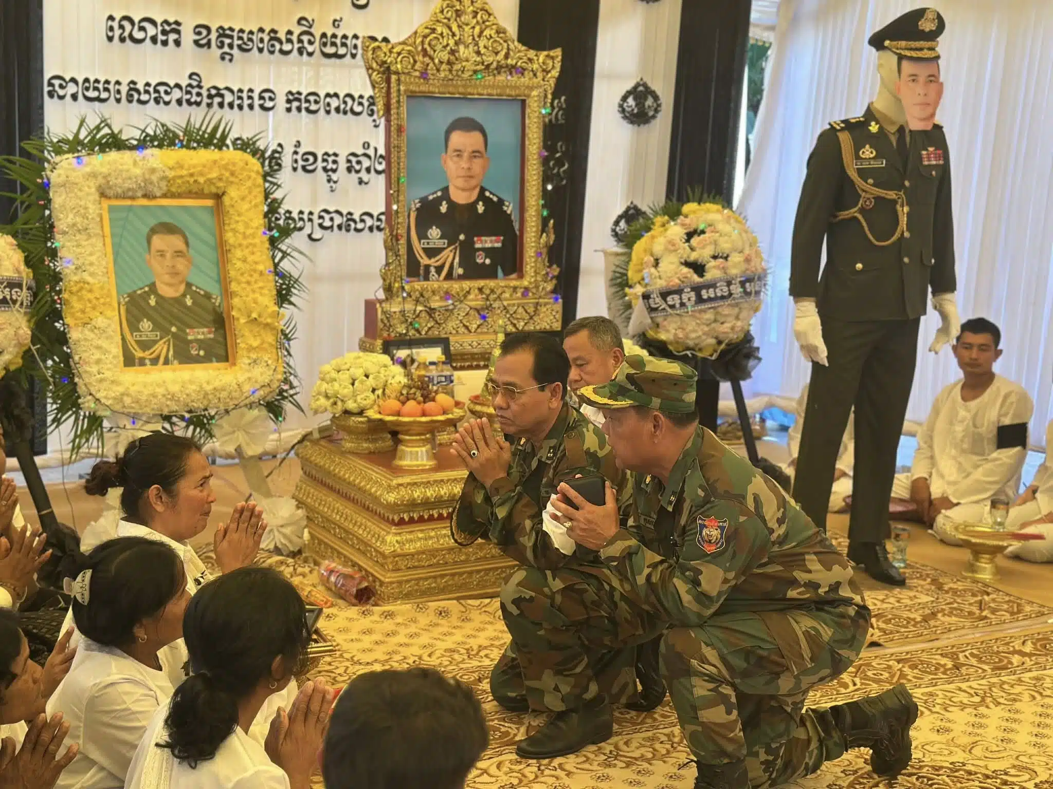 เพจ Army Military Force โพสต์รูปภาพงานพิธีศพของนายทหารชั้นผู้ใหญ่ของกัมพูชา โดยระบุข้อความว่า “ทหารไทยสอยนายพลกัมพูชาร่วงอีกนาย! พลตรีออง วิบูล รองเสธนาธิการกองพลสนับสนุนที่ 5 ของกองทัพกัมพูชา ถูกสไนเปอร์ฝ่ายไทยสอยร่วงระหว่างการสู้รบที่สมรภูมิตาควาย”