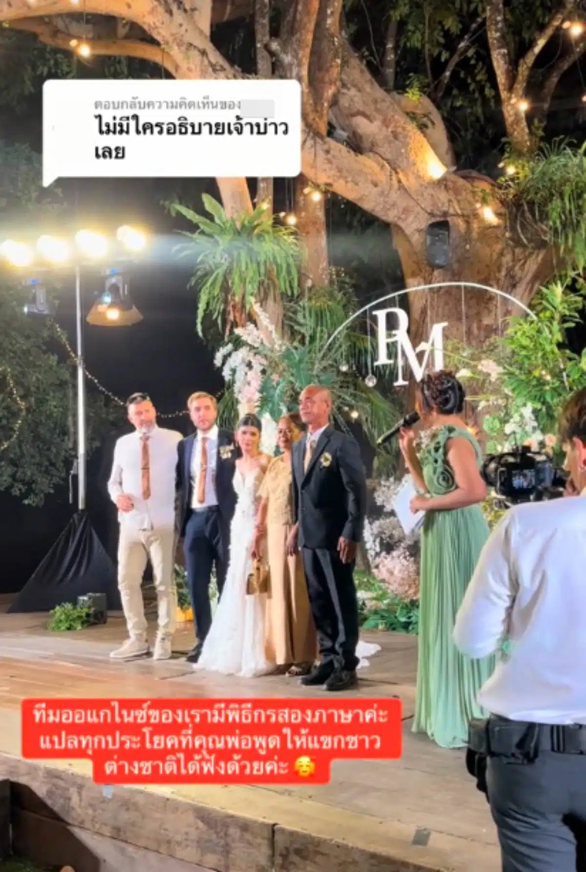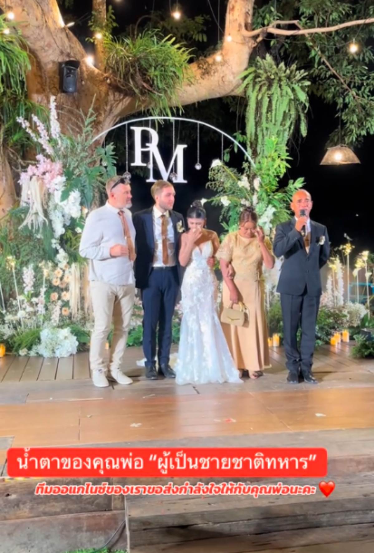 บนเวที คุณพ่อทหารแนวหน้ายังกล่าวอวยพรลูกสาวในงานแต่งงานพร้อมหลั่งน้ำตา โดยบอกว่าวันที่ลูกสาวโทรหานั้นกำลังปฏิบัติหน้าที่อยู่ที่บ้านหนองจาน จ.สระแก้ว ซึ่งมีการปะทะกันทุกวัน แต่ลูกก็โทรมาถามว่า พ่อมาได้ไหม (ร้องไห้) ตนก็บอกว่า 50:50 จากนั้นจึงไปปรึกษาผู้หมวดว่า ลูกสาวแต่งงาน ขอไปได้ไหม ซึ่งผู้หมวดก็ว่าจะไปคุยกับผู้พัน เมื่อคุยจบ ผู้พันก็อนุญาต