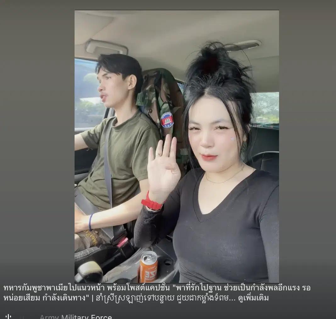 หนึ่งในเหตุการณ์ที่สร้างความฮือฮาคือคลิปวิดีโอของทหารนายหนึ่งที่พาภรรยานั่งรถเข้ามายังแนวหน้าด้วยท่าทีผ่อนคลาย มีการโบกไม้โบกมือทักทายกล้อง ข้อมูลจากเพจ Army Military Force ระบุว่าทหารนายนี้พาภรรยามาอยู่ด้วยกันที่ฐานปฏิบัติการนานถึง 3 เดือน พร้อมทั้งเปิดเผยข่าวดีว่าภรรยากำลังตั้งครรภ์และเตรียมจะมีลูกด้วยกัน ท่ามกลางคำมั่นสัญญาว่าจะปกป้องแผ่นดินกัมพูชา