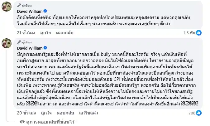 ครูเดวิด วิลเลี่ยม ครูสอนภาษาอังกฤษและอินฟลูเอนเซอร์ชื่อดัง โพสต์ข้อความผ่านเฟซบุ๊ก หลังจากที่ โดนัลด์ ทรัมป์ ประธานาธิบดีสหรัฐฯ ประกาศว่าต้องการกรีนแลนด์ เนื่องจากมีทรัพยากรจำนวนมาก และยุทธศาสตร์ทางการทหารเพื่อความมั่นคงของชาติ