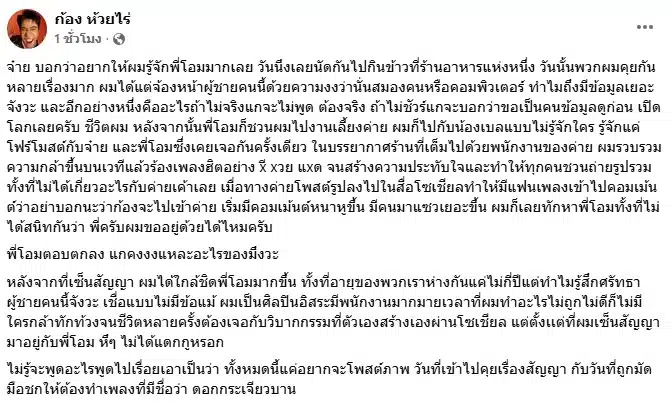 “ก้อง ห้วยไร่” เปิดใจซึ้งถึง “โอม Cocktail” หลังจบคอนเสิร์ตทัวร์ 77 จังหวัด