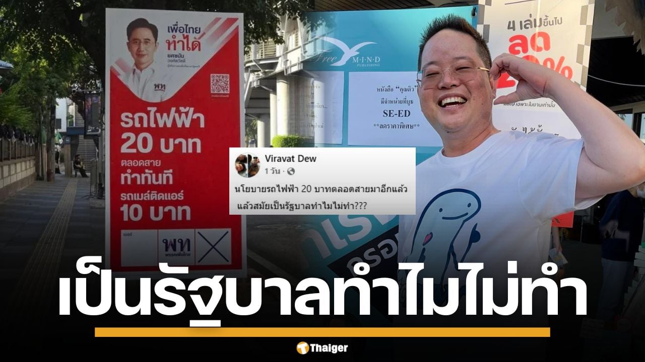 “ดิว วีรวัฒน์” ถามแรง นโยบายรถไฟฟ้า 20 บาทตลอดสาย สมัยเป็นรัฐบาลทำไมไม่ทำ และต้องเอาภาษีคนไทยไปจ่ายส่วนต่างด้วยหรือไม่