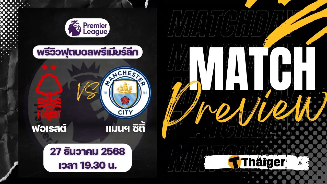 น็อตติ้งแฮม ฟอเรสต์ พบ แมนซิตี้ ดูบอลสด ฟุตบอลพรีเมียร์ลีก 2025/26 วันที่ 27 ธ.ค. 68