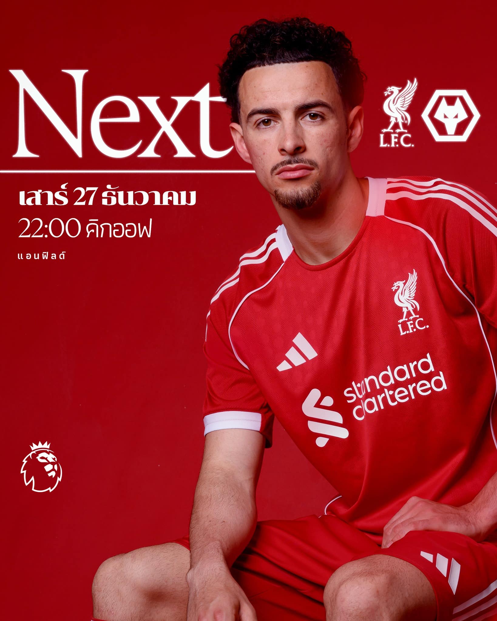 27 ธันวาคม 2568 เวลา 22.00 น. ถ่ายทอดสด ดูบอลสด ฟุตบอล พรีเมียร์ลีก ฤดูกาล 2025/26 ที่สนาม แอนฟิลด์ ลิเวอร์พูล พบ วูล์ฟแฮมป์ตัน The Thaiger พาไปวิเคราะห์เกม พร้อมการทำนายผล และคาดการณ์ 11 ตัวจริงได้ที่นี่