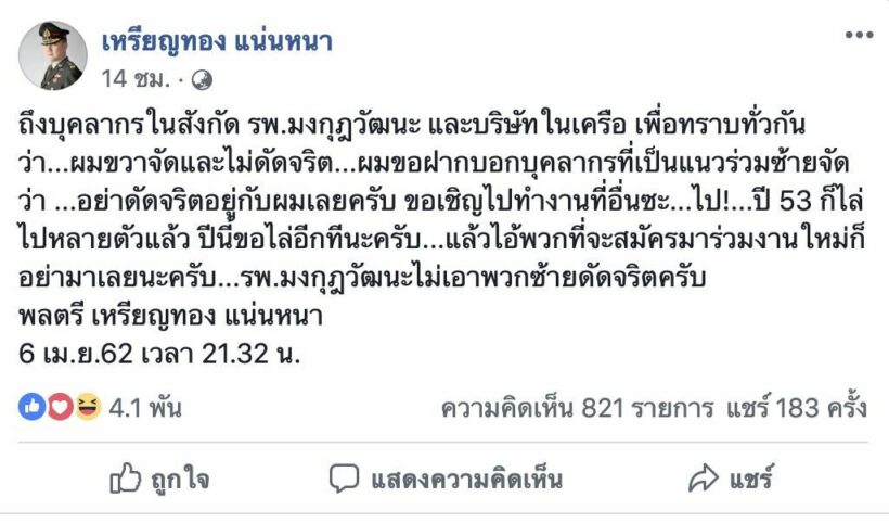 “ผมขวาจัดและไม่ดัดจริต” นายแพทย์ เหรียญทอง โพสต์เดือดบุคลากรที่คิดต่างไปทำงานที่อื่น