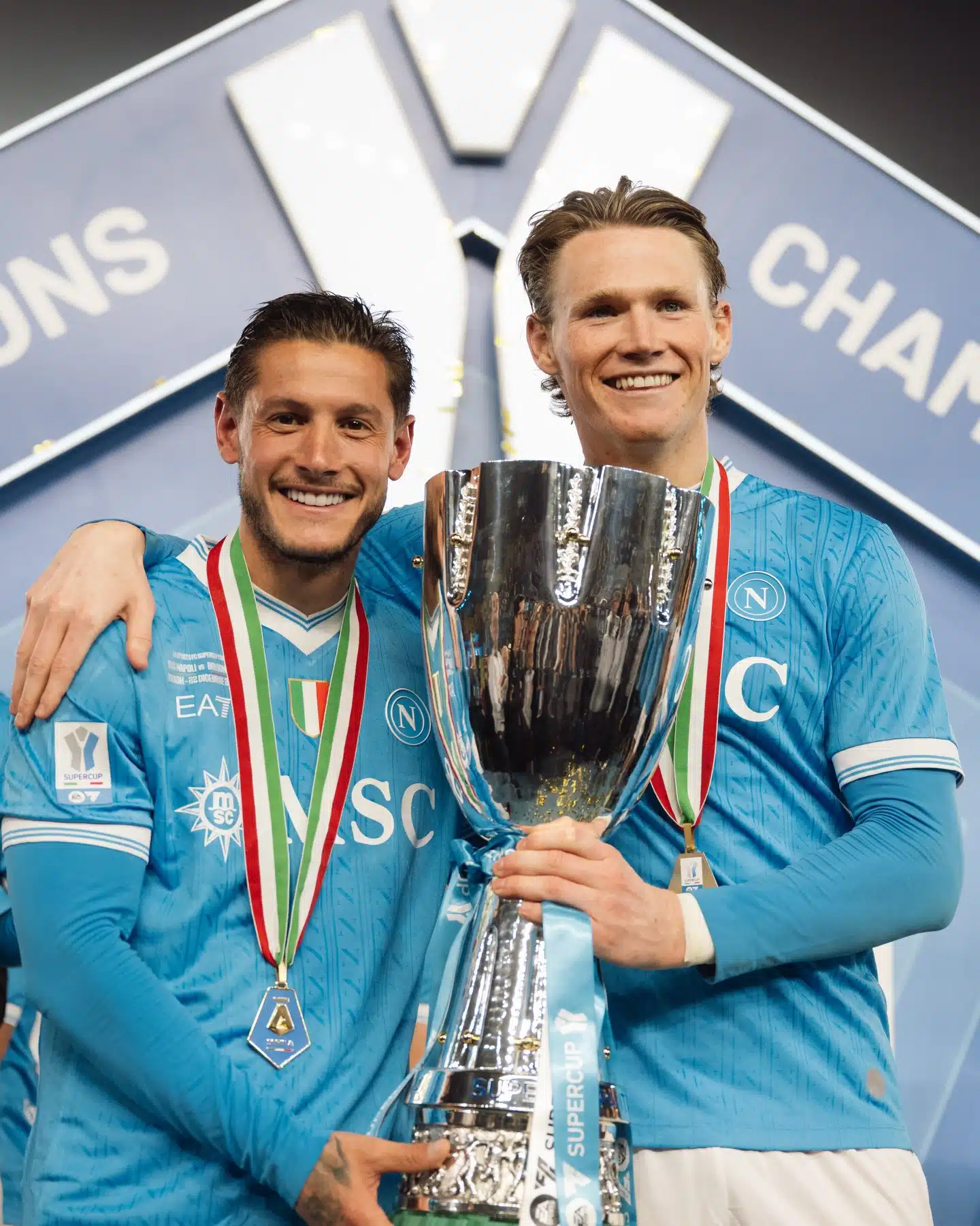 นาโปลี (4-3-3) : วานย่า มิลินโควิช-ซานวิช (GK) – โจวานนี่ ดิ ลอเรนโซ่, อามีร์ ราห์มานี่, อเลสซานโดร บวนจอร์โน่, แซม บิลเคบ้า – มาเธอัส โอลิเวร่า, เอลยิฟ เอลมาส, สก็อตต์ แม็คโทมิเนย์ – ดาวิด เนเรส, ราสมุส ฮอยลุนด์, โนอา แลง