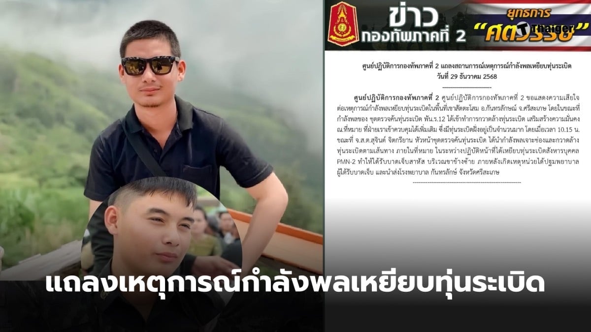 ศูนย์ปฏิบัติการกองทัพภาคที่ 2 แถลงเหตุการณ์กำลังพลเหยียบทุ่นระเบิด วันที่ 29 ธันวาคม 2568