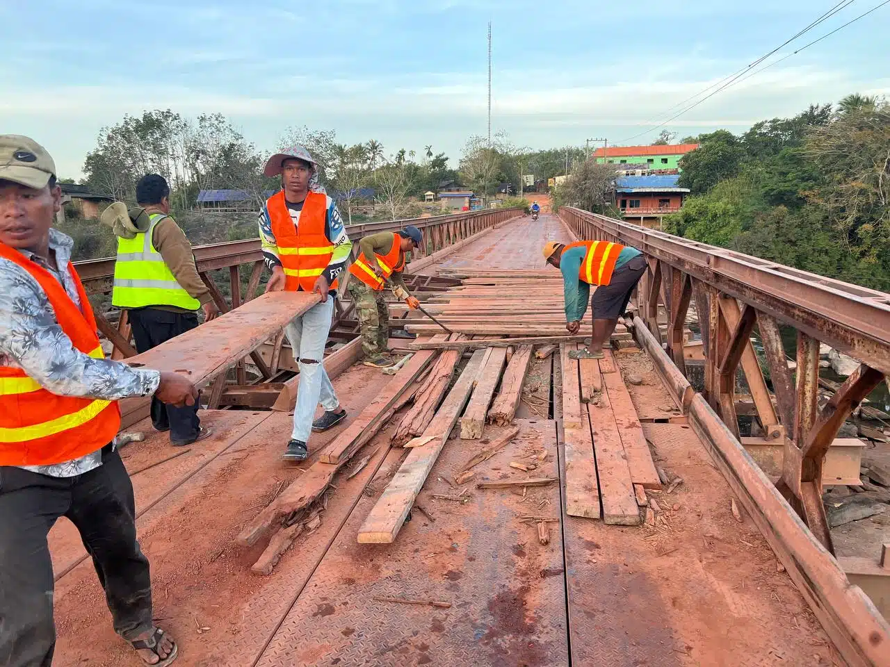 สื่อกัมพูชา เปิดภาพ สะพานจัยจุมเนี้ยะ ซ่อมเสร็จแล้ว เตรียมกลับเปิดให้สัญจรอีกครั้ง หลังจากที่โดน F-16 กองทัพไทยทิ้งไข่ใส่