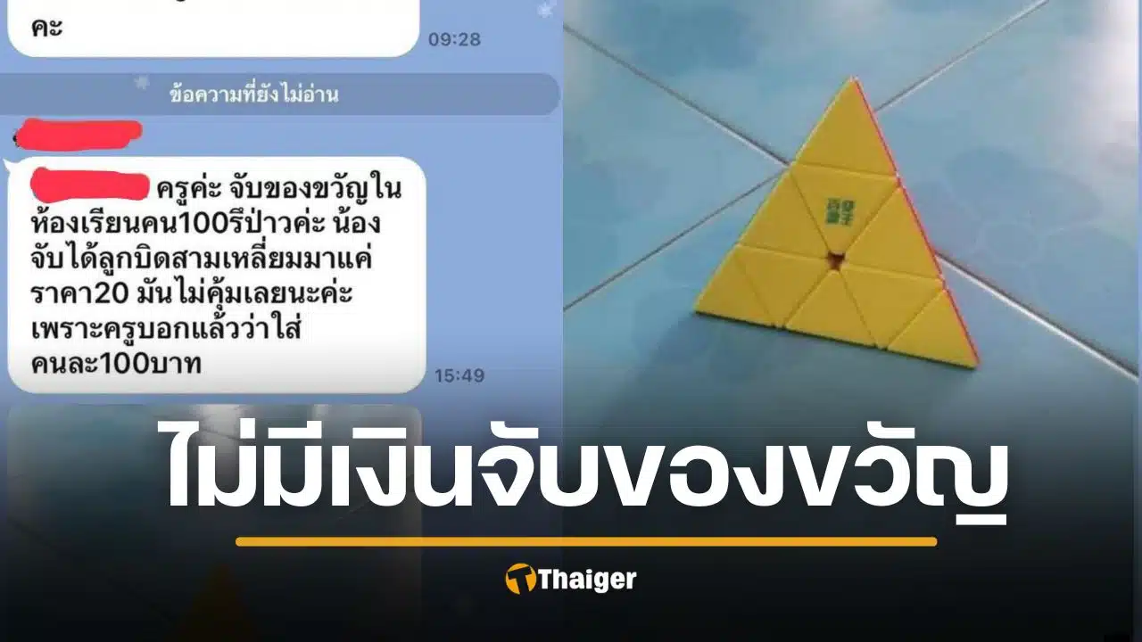 แต่ปัญหาเกิดเมื่อผู้ปกครองท่านหนึ่ง (ฝ่าย A) ได้ส่งรูปของเล่น “ลูกบิดสามเหลี่ยม” ลงในกลุ่มไลน์ พร้อมตั้งคำถามด้วยความไม่พอใจว่า “ครูให้แลกของขวัญคนละ 100 บาท แต่ทำไมลูกของตนจับได้ชิ้นนี้ ซึ่งราคามันแค่ 20 บาทเท่านั้น”
