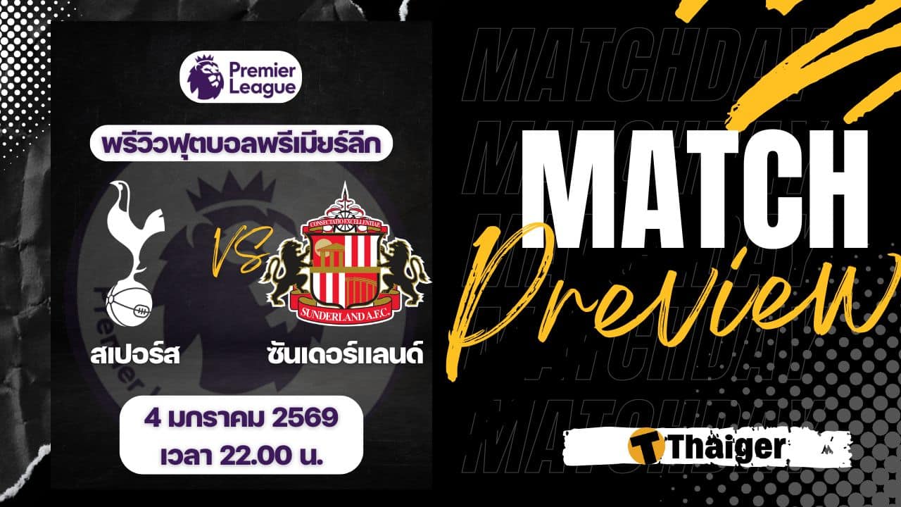 4 มกราคม 2569 เวลา 22.00 น. ถ่ายทอดสด ดูบอลสด ฟุตบอล พรีเมียร์ลีก ฤดูกาล 2025/26 ที่สนาม ท็อตแน่ม ฮอตสเปอร์ สเตเดี้ยม สเปอร์ส พบ ซันเดอร์แลนด์ The Thaiger พาไปวิเคราะห์เกม พร้อมการทำนายผล และคาดการณ์ 11 ตัวจริงได้ที่นี่