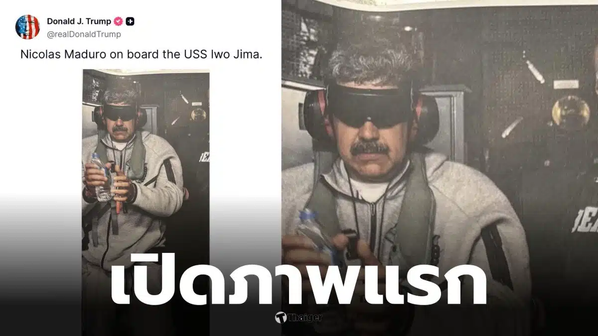 นายโดนัลด์ ทรัมป์ ประธานาธิบดีสหรัฐฯ เปิดเผยภาพแรกของนายนิโคลัส มาดูโร ประธานาธิบดีเวเนซุเอลา หลังถูกสหรัฐฯ เปิดปฏิบัติการโจมตีเมืองหลวงเวเนซุเอลา ก่อนจะควบคุมตัวเมื่อวานนี้ (3 ม.ค.) ผ่านทาง Truth Social