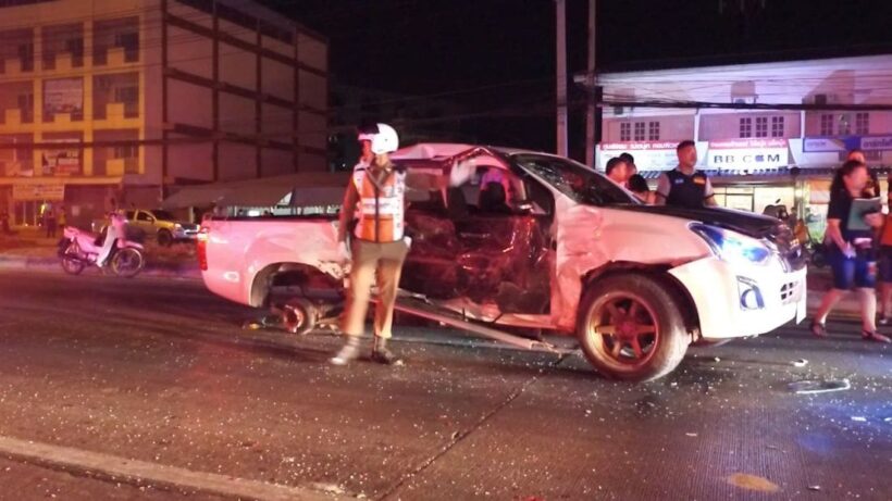 กระบะตีนผีแข่งซิ่งชนยับ 5 คันรวด นศ.ปี2 นั่งรอเพื่อนโดนลูกหลงสมองเละ