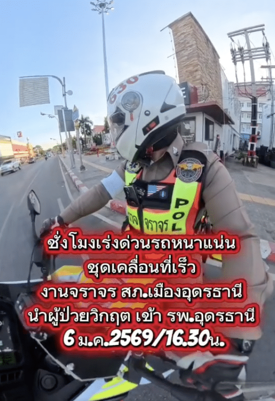 7 มกราคม 2569 ปฏิบัติการแข่งกับเวลาเพื่อต่อลมหายใจเพื่อนมนุษย์ งานจราจร สภ.เมืองอุดรธานีประกาศประชาสัมพันธ์ด่วนขอความร่วมมือผู้ใช้รถใช้ถนนในจังหวัดอุดรธานี โปรดหลีกทางและอำนวยความสะดวกให้กับ “ขบวนรถนำส่งอวัยวะหัวใจ”