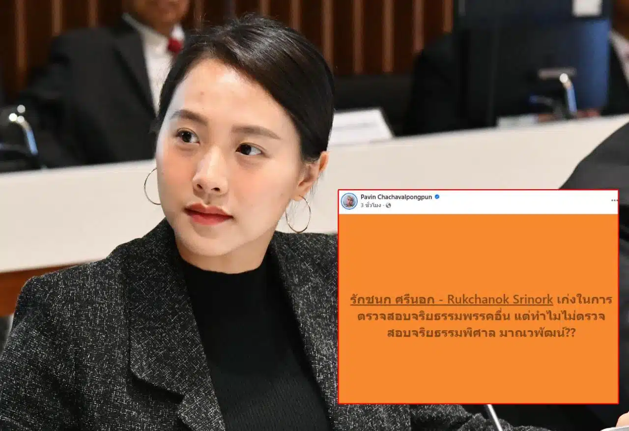ซึ่ง อ.ปวิน ยังได้แท็ค ไอซ์ รักชนก ศรีนอก ผู้สมัคร สส.บัญชีรายชื่อพรรคประชาชน และเขียนข้อความว่า “รักชนก ศรีนอก – Rukchanok Srinork เก่งในการตรวจสอบจริยธรรมพรรคอื่น แต่ทำไมไม่ตรวจสอบจริยธรรมพิศาล มาณวพัฒน์?? ถ้าไม่เข้ามาตอบ ชั้นจะฉีกอกเธอ! อย่าเก่งแต่แค่พรรคอื่น” ตามที่มีรายงานไปก่อนหน้านี้นั้น