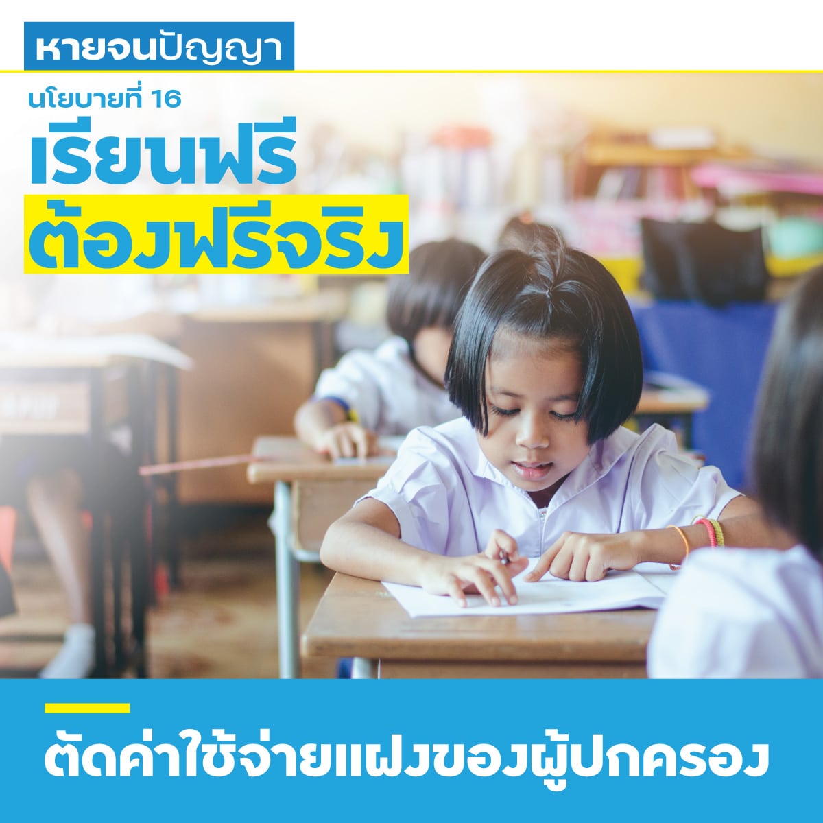 ยกระดับการศึกษา ปรับโครงการเรียนฟรี 15 ปี ให้เป็น “เรียนฟรีจริง” โดยรัฐจะอุดหนุนครอบคลุมทุกค่าใช้จ่าย ทั้งค่าอุปกรณ์ ชุดนักเรียน ค่าเดินทาง และค่าอาหาร เพื่อแบ่งเบาภาระผู้ปกครองอย่างแท้จริง