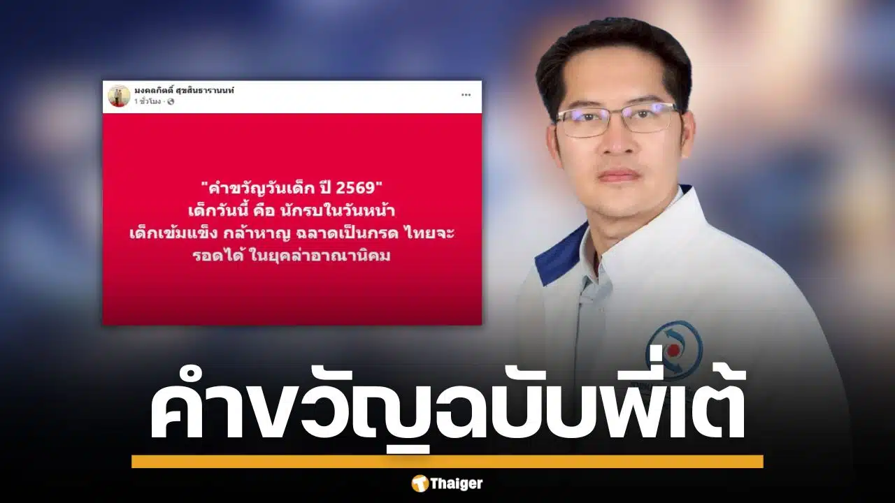 นายมงคลกิตติ์ สุขสินธารานนท์ แคนดิเดตนายกรัฐมนตรี พรรคทางเลือกใหม่ ได้ออกมาสร้างสีสันและความฮือฮาบนโลกออนไลน์ต้อนรับวันเด็กแห่งชาติ ประจำปี 2569 ซึ่งตรงกับวันเสาร์ที่ 10 มกราคม ด้วยการโพสต์ข้อความผ่านเฟซบุ๊ก มอบคำขวัญวันเด็กฉบับพิเศษที่สะท้อนตัวตนและมุมมองทางการเมืองอันเป็นเอกลักษณ์