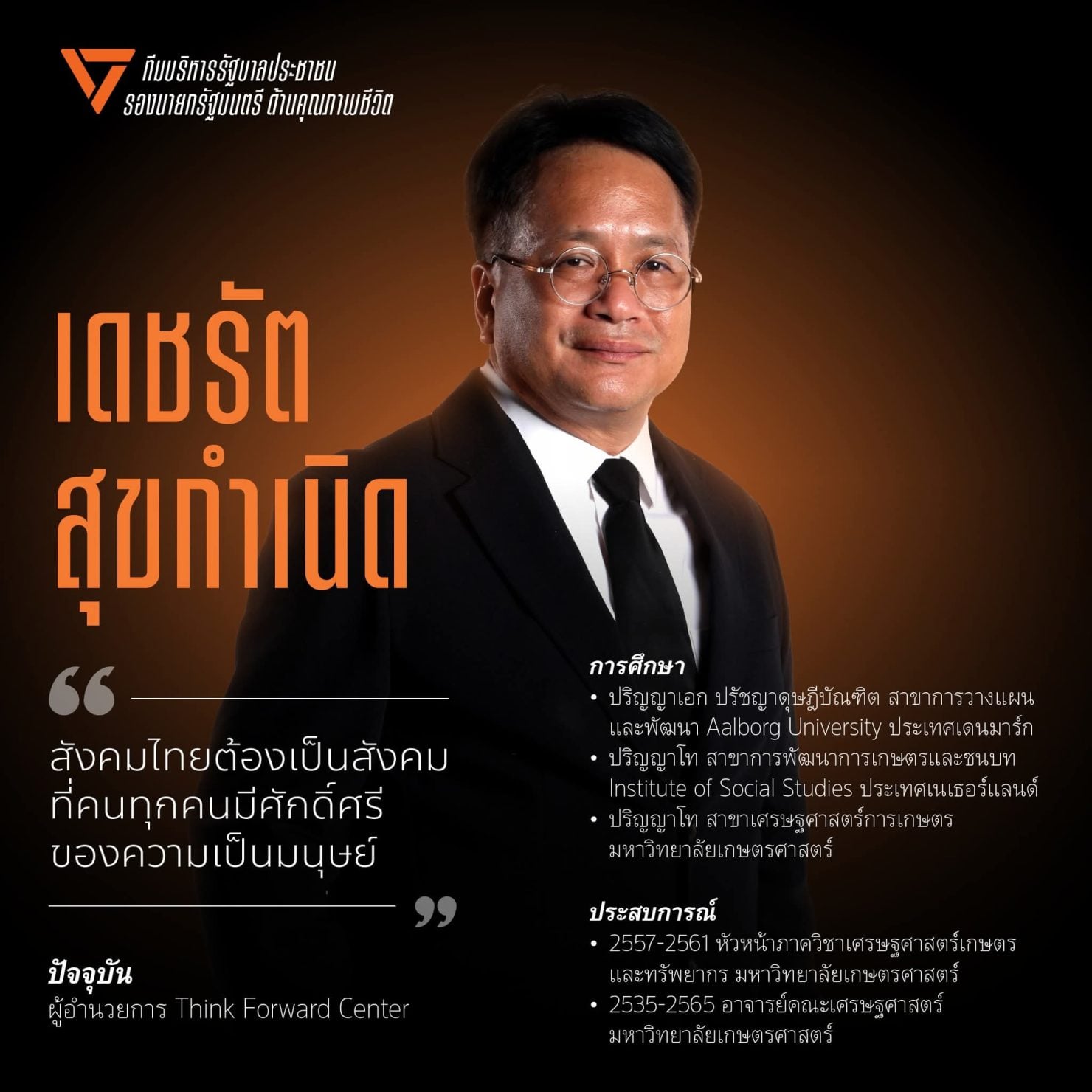 นายกรัฐมนตรี: นายณัฐพงษ์ เรืองปัญญาวุฒิ (ดูแลภาพรวมและป้องกันปัญหาไซโล)