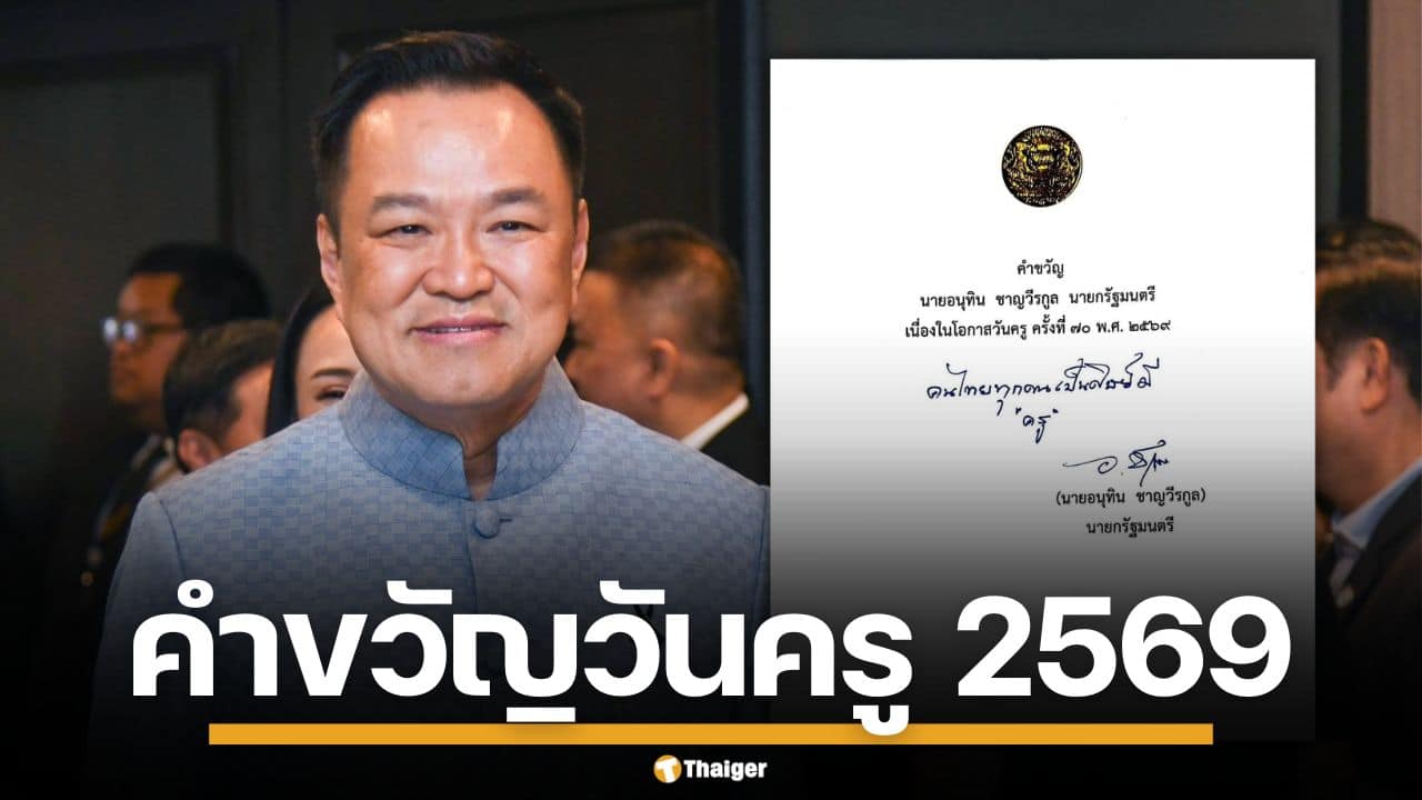 “อนุทิน ชาญวีรกูล” นายกรัฐมนตรี มอบคำขวัญวันครู ประจำปี 2569 เนื่องในโอกาสวันครู ครั้งที่ 70 ด้วยถ้อยคำสั้นๆ “คนไทยทุกคนเป็นศิษย์มีครู”