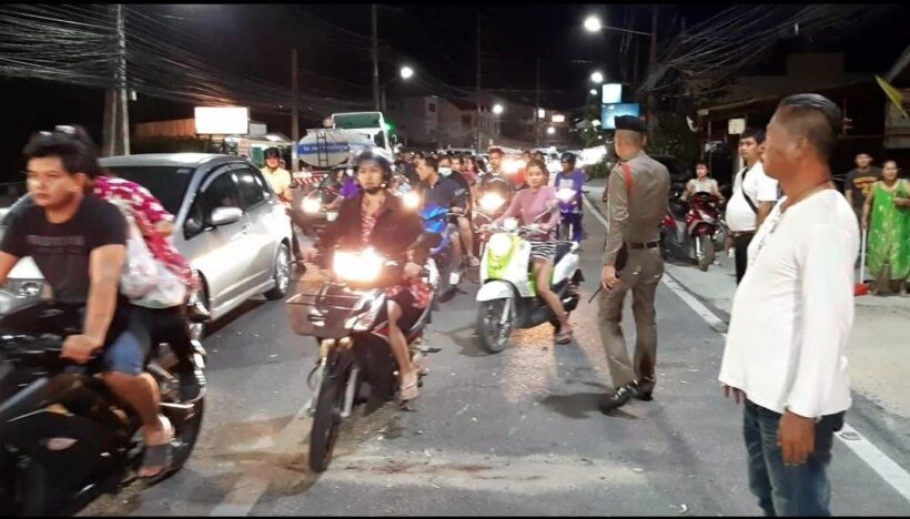 เมื่อเวลาประมาณ 19.00น.วันที่10 เม.ย.2562 เจ้าหน้าที่ศูนย์วิทยุสภ.ฉลอง ได้รับแจ้งเหตุ รถ จยย.ชนประสานงากันบน ถนนเจ้าฟ้าตะวันตก บริเวณเยื้องหน้าปากซอยบ้านกลาง หน้าบ้านที่ทำการผู้ใหญ่บ้านหมู่ที่ 7 ตำบลฉลอง หลังได้รับเเจ้งจึงประสานเจ้าหน้าที่ตำรวจสายตรวจ สภ.ฉลอง ลงพื้นที่ตรวจสอบพร้อมด้วยเจ้าหน้าที่ กู้ชีพทต.ฉลอง และรถพยาบาลฉุกเฉิน รพ.ฉลอง เจ้าหน้าที่ศูนย์ช่วยเหลือนทท.อบจ.ภูเก็ต นายศุภวัฒกัณฐ์ คุณลักษณ์ สมาชิกสภาเทศบาลตำบลฉลอง นางพงศ์พิชญา พงศ์ภัคธัญธร ผู้ใหญ่บ้านหมู่ที่ 7 ตำบลฉลอง และเจ้าหน้าที่ตำรวจท่องเที่ยว ร่วมตรวจสอบ