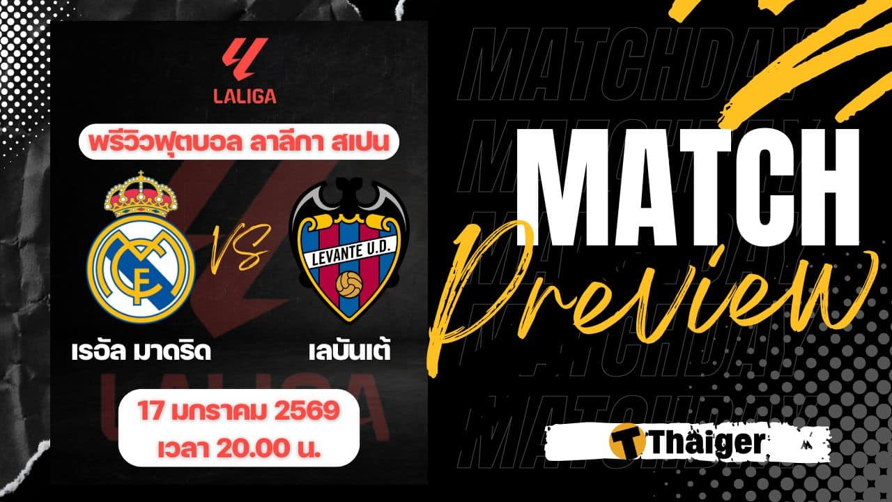 17 มกราคม 2568 เวลา 20.00 น. ถ่ายทอดสด ดูบอลสด ฟุตบอล ลาลีกา สเปน ฤดูกาล 2025/26 ที่สนาม เบร์นาเบว เรอัล มาดริด พบ เลบันเต้ The Thaiger พาไปวิเคราะห์เกม พร้อมการทำนายผล และคาดการณ์ 11 ตัวจริงได้ที่นี่
