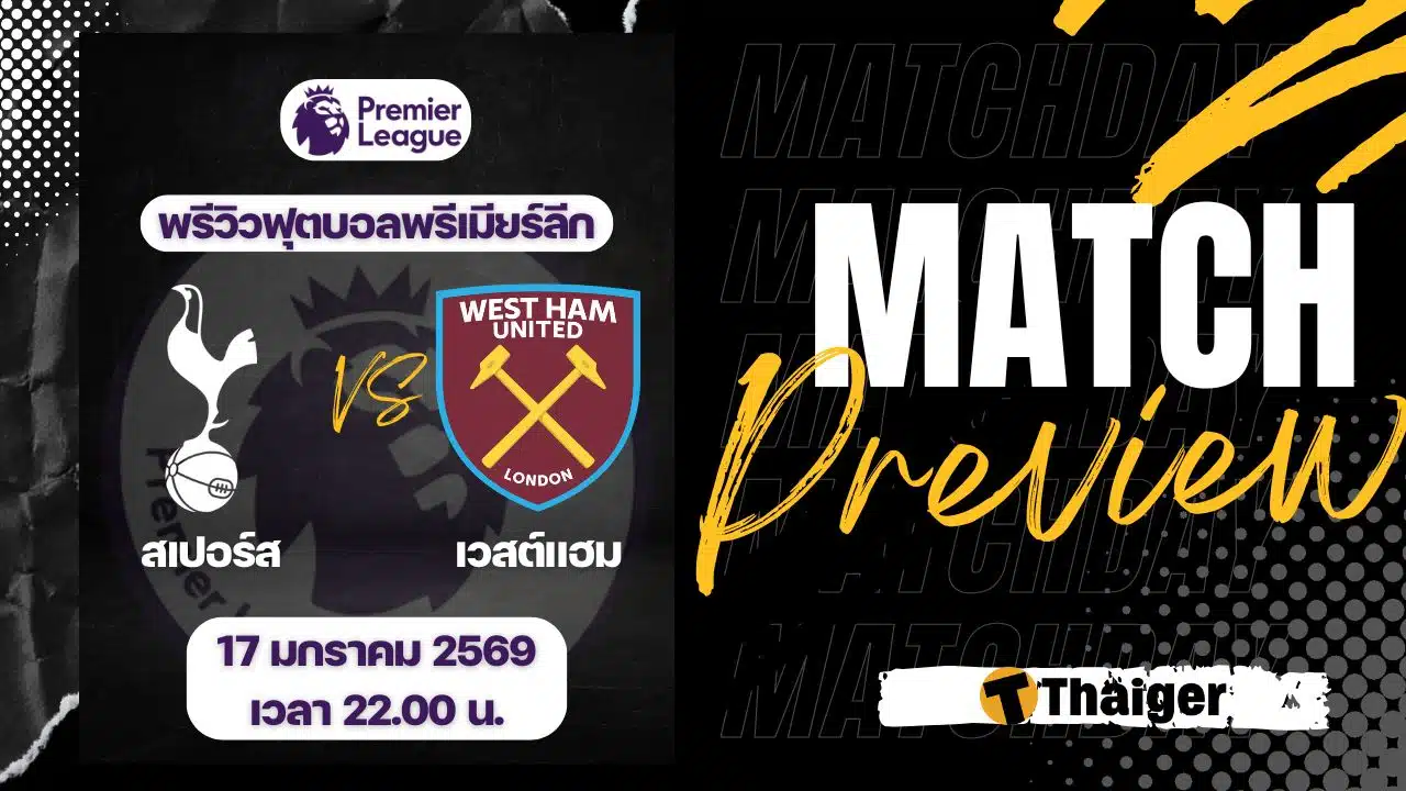 สเปอร์ส พบ เวสต์แฮม ดูบอลสด ฟุตบอลพรีเมียร์ลีก 2025/26 วันที่ 17 ม.ค. 69