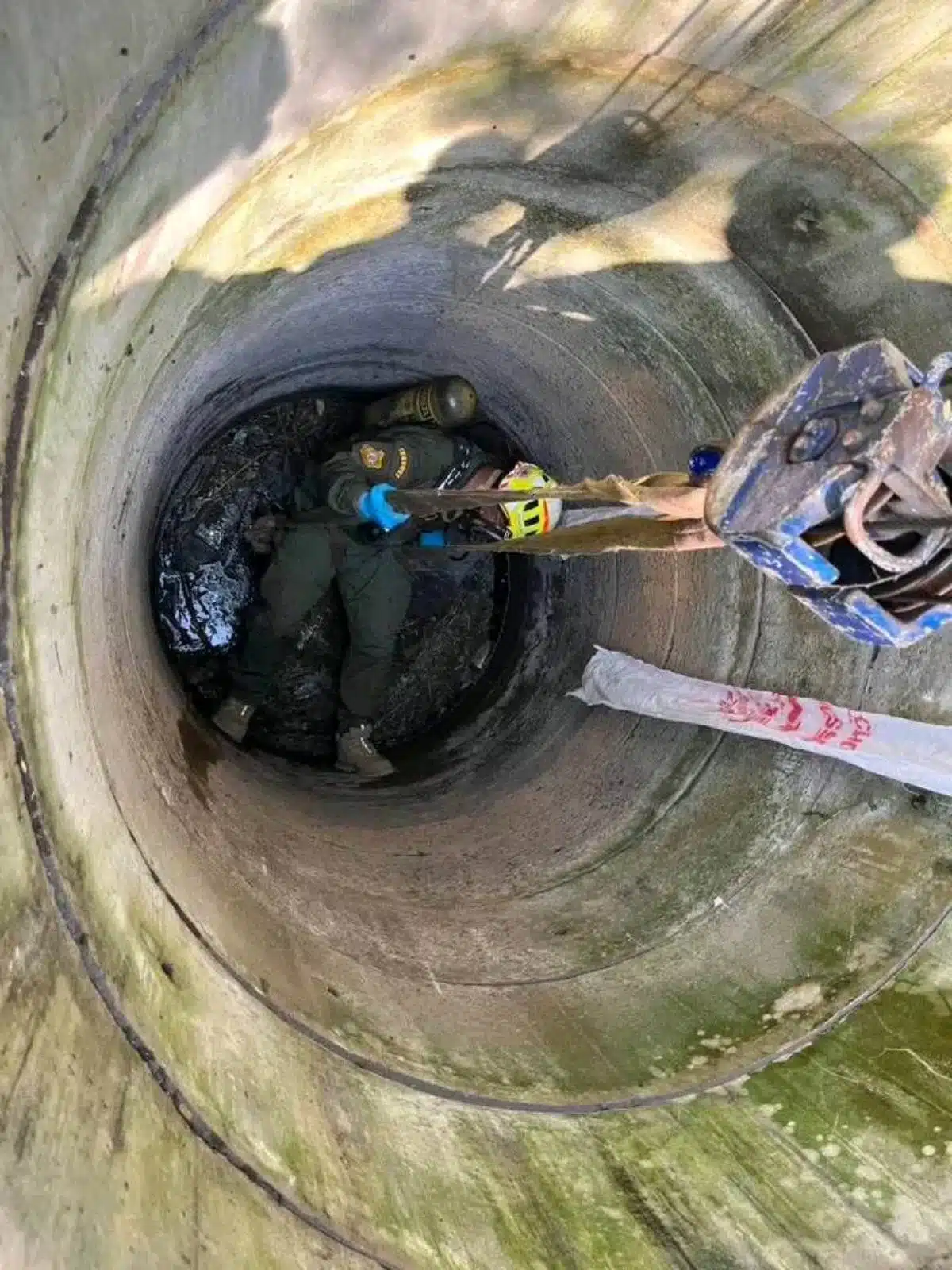 ปรากฏเวลานานกว่า 12 ชม.ของเมื่อวาน (16 ม.ค.) ที่ผ่านมา จนท.ต้องโรยตัวลงบ่อนรก” 18 เมตร เนื่องจากผู้ก่อเหตุได้จ้างรถบรรทุก 6 ล้อ ขนหินคลุกกว่า 4 คิว (ประมาณ 4 ตัน) เทอัดลงไปในบ่อเพื่อทับร่างเหยื่อ ทำให้ทีมกู้ภัยต้องใช้เจ้าหน้าที่ติดถังออกซิเจนและเครื่องอัดอากาศ โรยตัวลงไปในพื้นที่แคบๆ ได้เพียงครั้งละ 1 คน เพื่อใช้พลั่วตักหินใส่กระป๋องสีขนาด 20 ลิตร ลำเลียงขึ้นมาทีละใบ