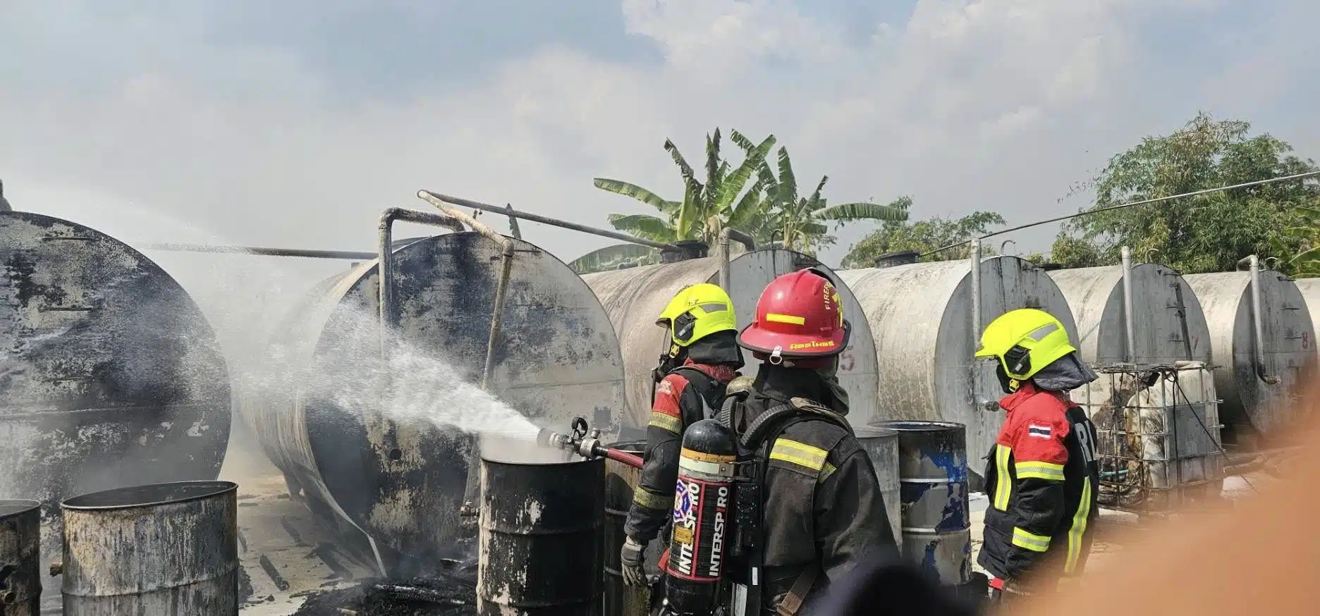 คุมเพลิงได้แล้ว! เหตุไฟไหม้ถังเก็บน้ำมันขนาดใหญ่ ย่านลาดกระบัง
