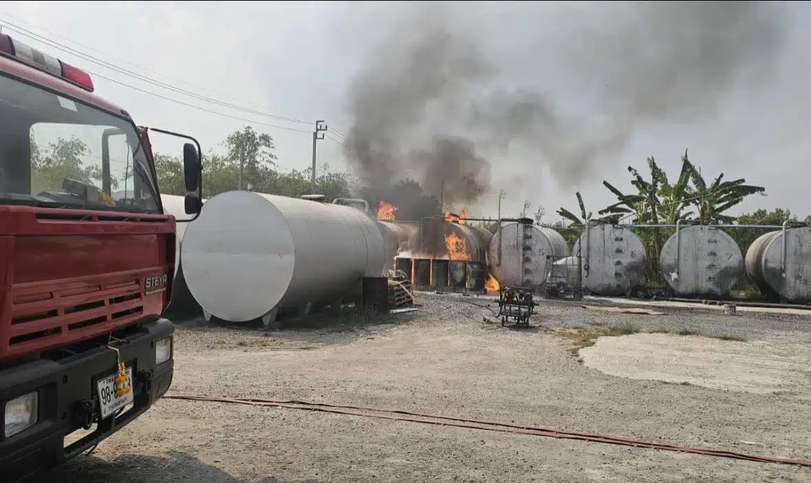 ระทึก! ไฟไหม้ถังเก็บน้ำมันขนาดใหญ่ ซอยแฮปปี้เพลส 7 กู้ภัยรุดระดมฉีดโฟมคุมเพลิงได้ใน 13 นาที โชคดีจุดเกิดเหตุห่างไกลชุมชน