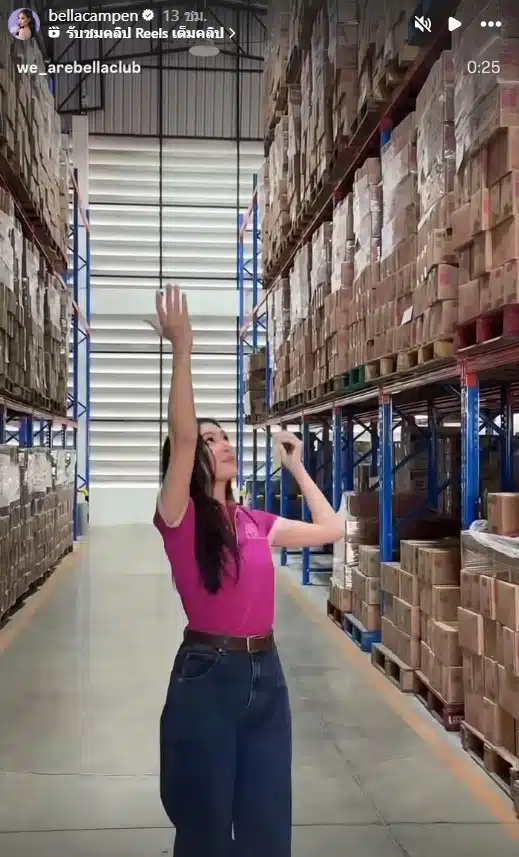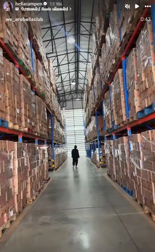 ท่านประธานเบลล่า ขอสลัดลุคนางเอกชั่วคราว ลงพื้นที่ลุยตรวจความเรียบร้อยที่โกดังสินค้าด้วยตัวเอง พร้อมเผยภาพเบื้องหลังที่ทำเอาอึ้ง เพราะเต็มไปด้วยกองทัพลังสินค้าที่วางเรียงรายซ้อนกันสูงลิบเต็มพื้นที่โกดัง เป็นเครื่องการันตีว่าออเดอร์ถล่มทลาย ขายดีเทน้ำเทท่าขนาดไหน