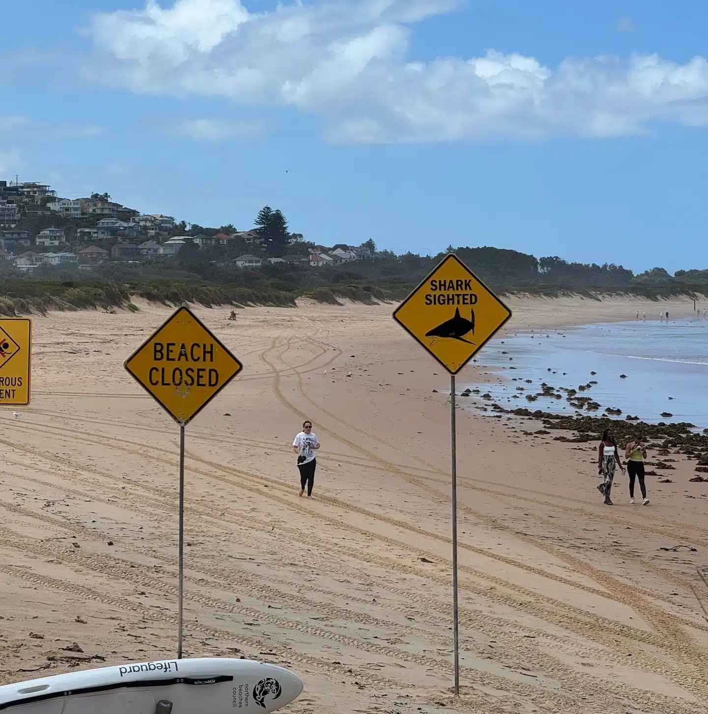พยานในที่เกิดเหตุระบุว่าเห็น “ฉลามหัวบาตร” ความยาวประมาณ 1.5 เมตร วนเวียนอยู่ในบริเวณนั้น ขณะที่เจ้าหน้าที่กู้ภัยทางน้ำได้สั่งปิดหาดและใช้โดรนบินสำรวจพื้นที่เพื่อติดตามร่องรอยของฉลามทันที