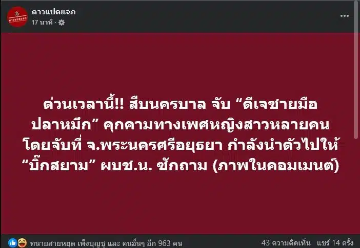 ด่วน! รวบคาอยุธยา “ดีเจชายมือปลาหมึก” หลังถูกสาวแฉพฤติกรรมสุดฉาว อ้างสอนงานแต่ลวนลาม-บังคับจับของลับ