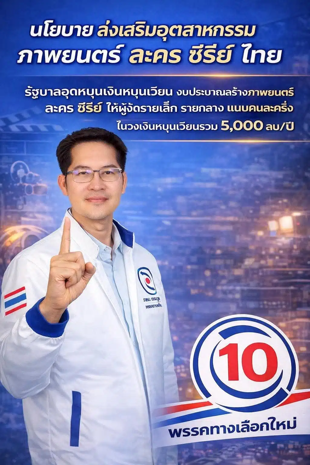 - อุดหนุนเงินหมุนเวียน งบประมาณสร้างภาพยนตร์ ละคร ซีรีส์ ให้ผู้จัดรายเล็ก รายกลาง แบบคนละครึ่ง ในวงเงินหมุนเวียนรวม 5,000 ลบ./ปี