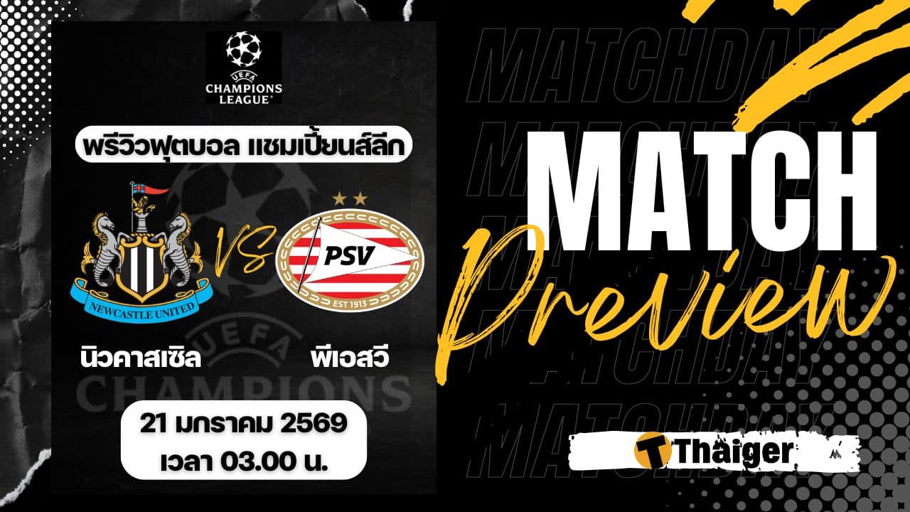 21 มกราคม 69 ดูบอลสด ฟุตบอล ยูฟ่า แชมเปี้ยนส์ ลีก รอบลีกเฟส นัดที่ 7 ระหว่าง นิวคาสเซิล พบ พีเอสวี ที่สนาม เซนต์ เจมส์ พาร์ค เวลา 03:00 น. ตามเวลาประเทศไทย พร้อมถ่ายทอดสด