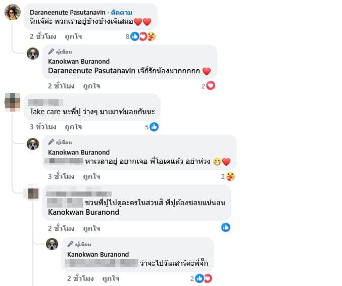ทันทีที่ข้อความเผยแพร่ออกไป เพื่อนพี่น้องในวงการบันเทิง อาทิ ท็อป ดารณีนุช และ แหม่ม อลิษา ต่างรีบเข้ามาคอมเมนต์ส่งกำลังใจ โดยยืนยันว่าจะอยู่เคียงข้างเสมอ อย่างไรก็ตาม ยังไม่มีการชี้แจงรายละเอียดที่แน่ชัดว่าโพสต์ดังกล่าวเกิดจากสาเหตุใด หรือคำว่า “หมดบุญ” นั้นสื่อถึงเรื่องราวความสัมพันธ์หรือความเหนื่อยล้าทางจิตใจด้านอื่น ซึ่งคงต้องรอให้เจ้าตัวออกมาเปิดเผยด้วยตนเองต่อไป