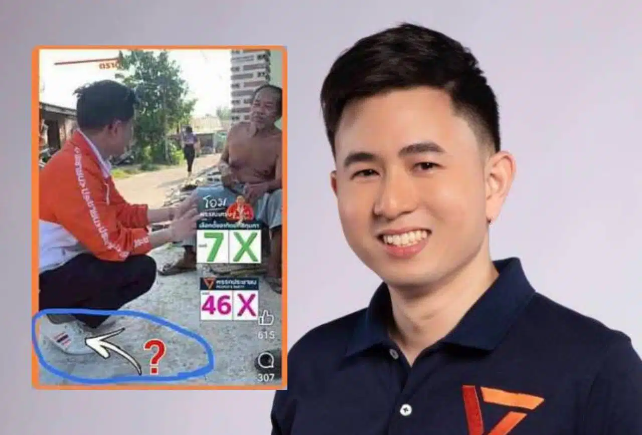 ผู้สมัคร สส.พรรคส้ม แจงใส่รองเท้ามีลายธงชาติ ยันไม่ได้มีเจตนาแอบแฝงใดๆ