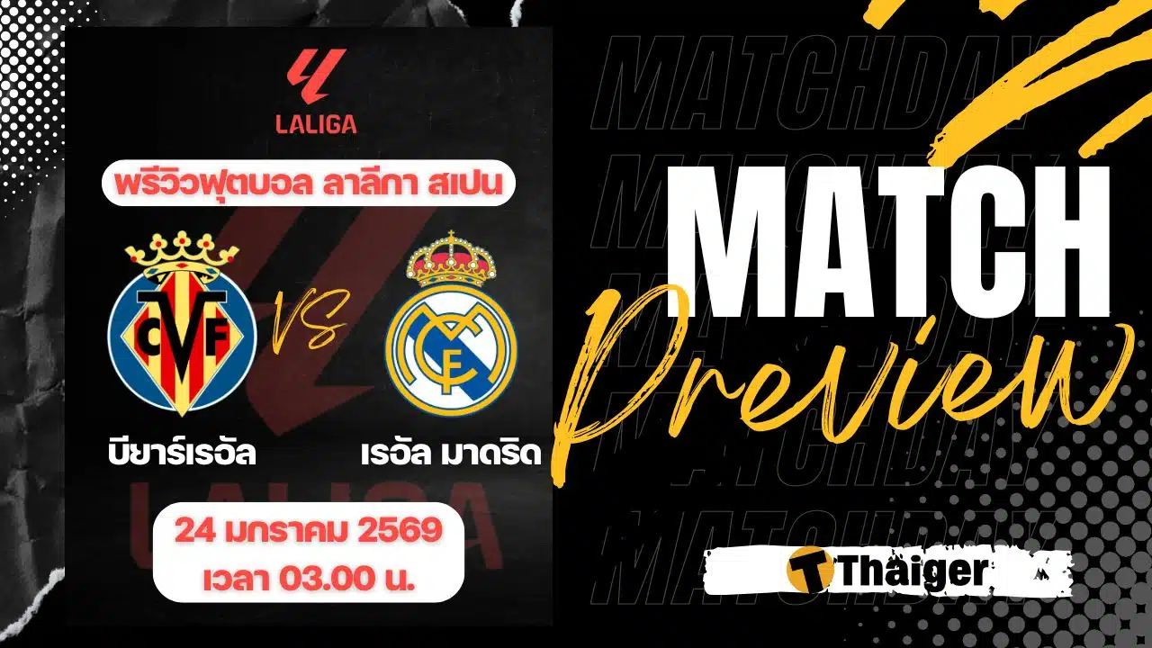 24 มกราคม 2568 เวลา 03.00 น. ถ่ายทอดสด ดูบอลสด ฟุตบอล ลาลีกา สเปน ฤดูกาล 2025/26 ที่สนาม เอสตาดิโอ เด ลา เซรามิก้า บียาร์เรอัล พบ เรอัล มาดริด The Thaiger พาไปวิเคราะห์เกม พร้อมการทำนายผล และคาดการณ์ 11 ตัวจริงได้ที่นี่
