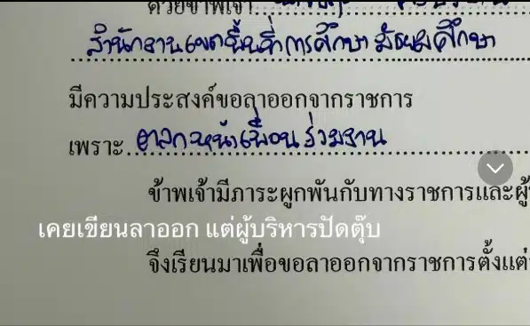 คนดูนับล้าน ครูหนุ่มเขียนหนังสือลาออกจากราชการ พร้อมเหตุผลสุดจริงใจ แต่ผู้บริหารปัดตก