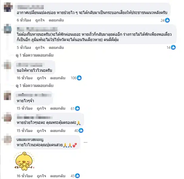 ท่ามกลางความเป็นห่วงของจากทั้งแฟนคลับและคนในวงการบันเทิง ต่างเข้ามาอวยพรให้ บุ๋ม ปนัดดา หายจากอาการป่วยโดยเร็ว และให้รักษาสุขภาพหลังจากนี้ด้วย