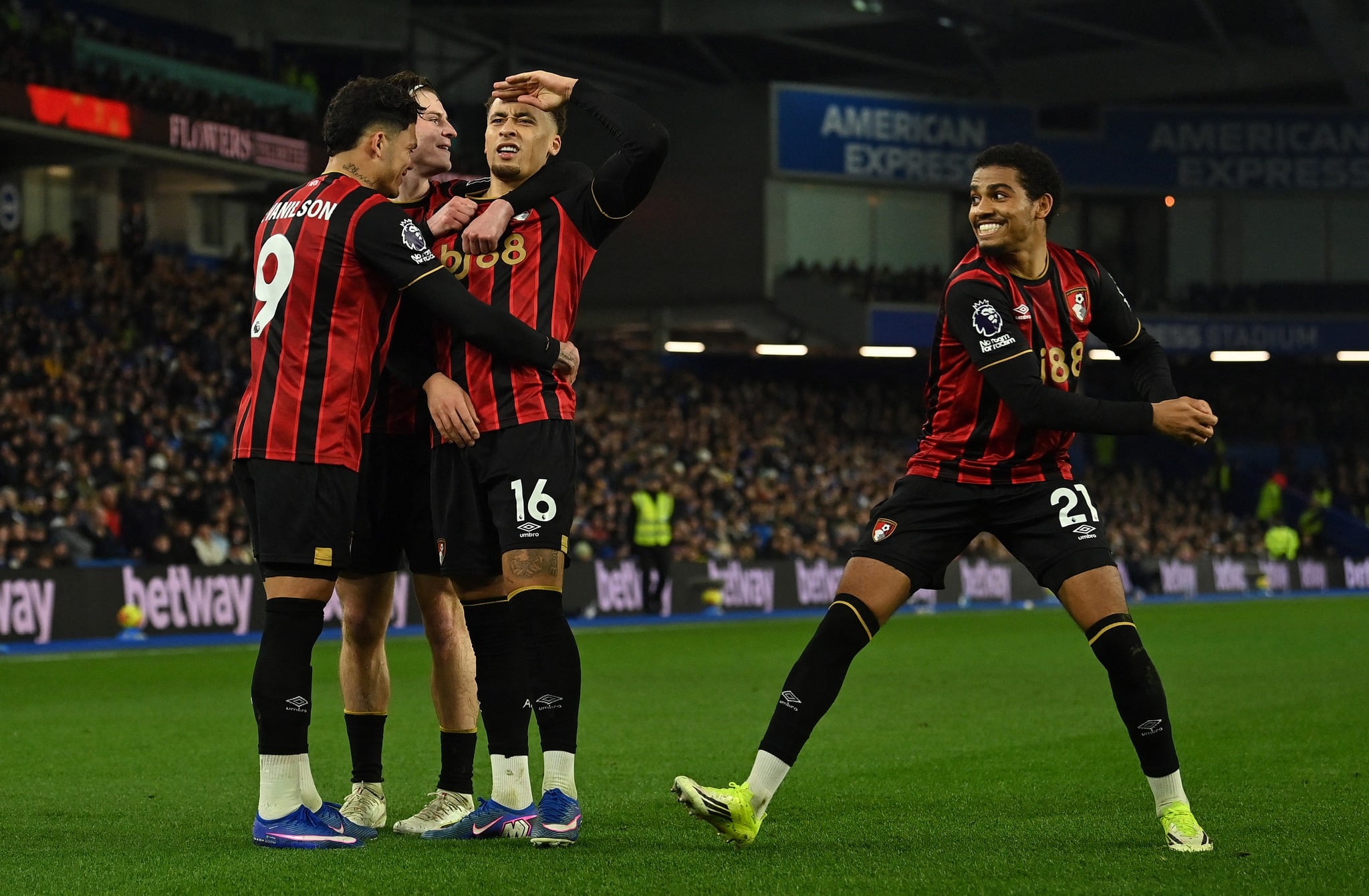 บอร์นมัธ (4-2-3-1) : ยอร์เย เปโตรวิช (GK) – อเล็กซ์ กิเมเนซ, มาร์กอส เซเนซี่, เจมส์ ฮิลล์, อาเดรียง ทรุฟแฟร์ – ลูอิส คุ้ก, อเล็กซ์ สก็อตต์ – เดวิด บรู๊คส์, จูเนียร์ ครูปี, อามีน อัดลี่ – เอวานิลซอน