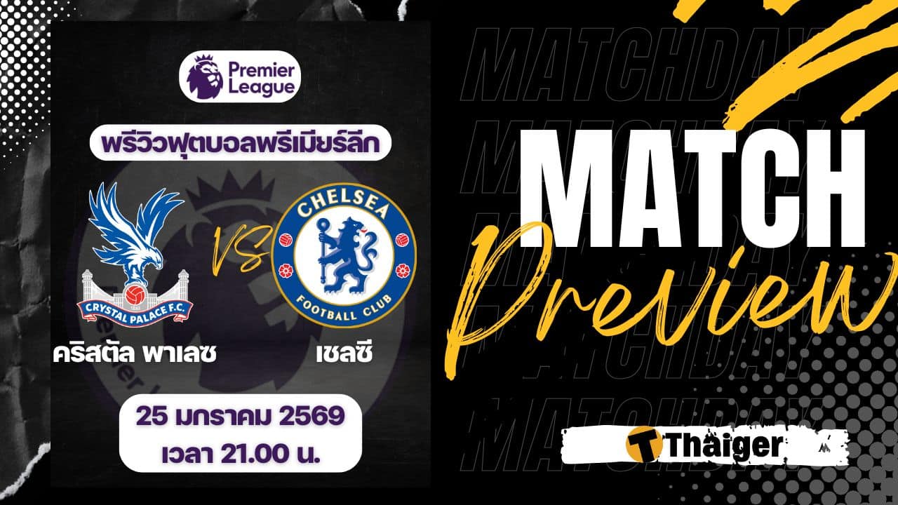 25 มกราคม 2569 เวลา 21.00 น. ถ่ายทอดสด ดูบอลสด ฟุตบอล พรีเมียร์ลีก ฤดูกาล 2025/26 ที่สนาม เซลเฮิร์สต์ พาร์ค คริสตัล พาเลซ พบ เชลซี The Thaiger พาไปวิเคราะห์เกม พร้อมการทำนายผล และคาดการณ์ 11 ตัวจริงได้ที่นี่