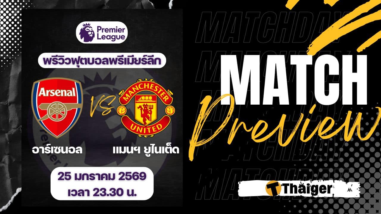 25 มกราคม 2569 เวลา 23.30 น. ถ่ายทอดสด ดูบอลสด ฟุตบอล พรีเมียร์ลีก ฤดูกาล 2025/26 ที่สนาม เอมิเรตส์ สเตเดี้ยม อาร์เซนอล พบ แมนยู The Thaiger พาไปวิเคราะห์เกม พร้อมการทำนายผล และคาดการณ์ 11 ตัวจริงได้ที่นี่